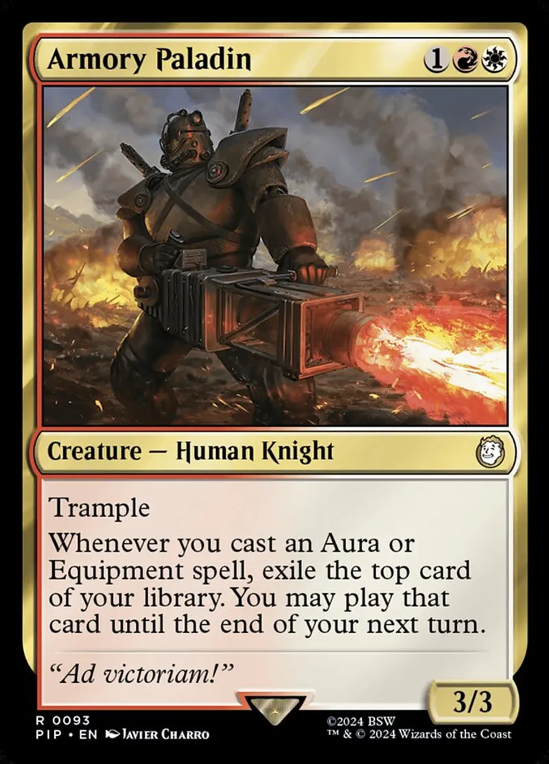 Magic: the Gathering (mtg) rare Creature — Human Knight Armory Paladin from Universes Beyond: Fallout (pip) last updated 2025-12-21 15:10:32
