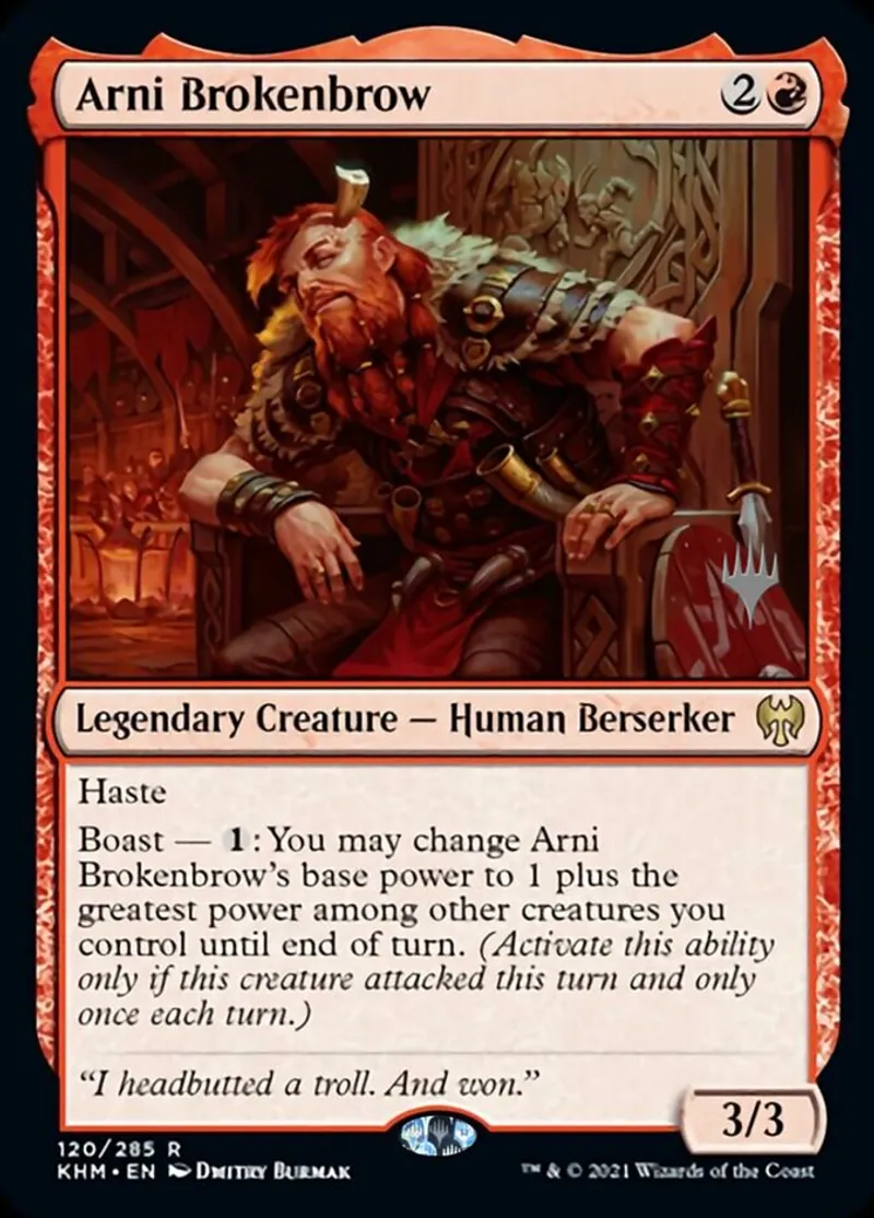 Magic: the Gathering (mtg) rare Legendary Creature — Human Berserker Arni Brokenbrow from Promo Pack: Kaldheim (pKHM) last updated 2026-02-21 16:33:37