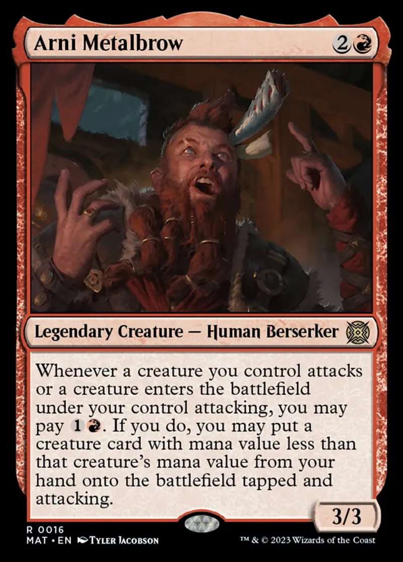 Magic: the Gathering (mtg) rare Legendary Creature — Human Berserker Arni Metalbrow from March of the Machine: The Aftermath (mat) last updated 2026-02-24 15:42:32