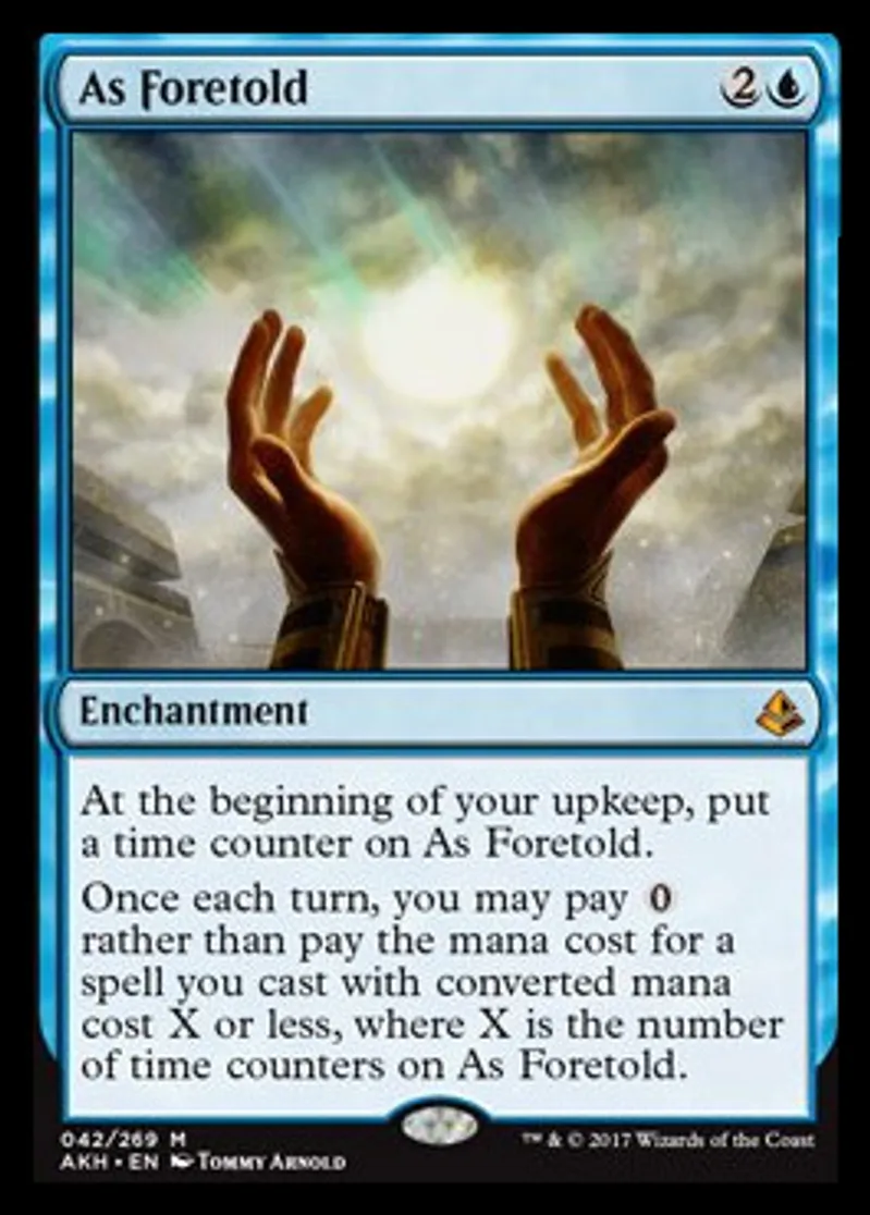 | Oracle Text | At the beginning of your upkeep, put a time counter on As Foretold.