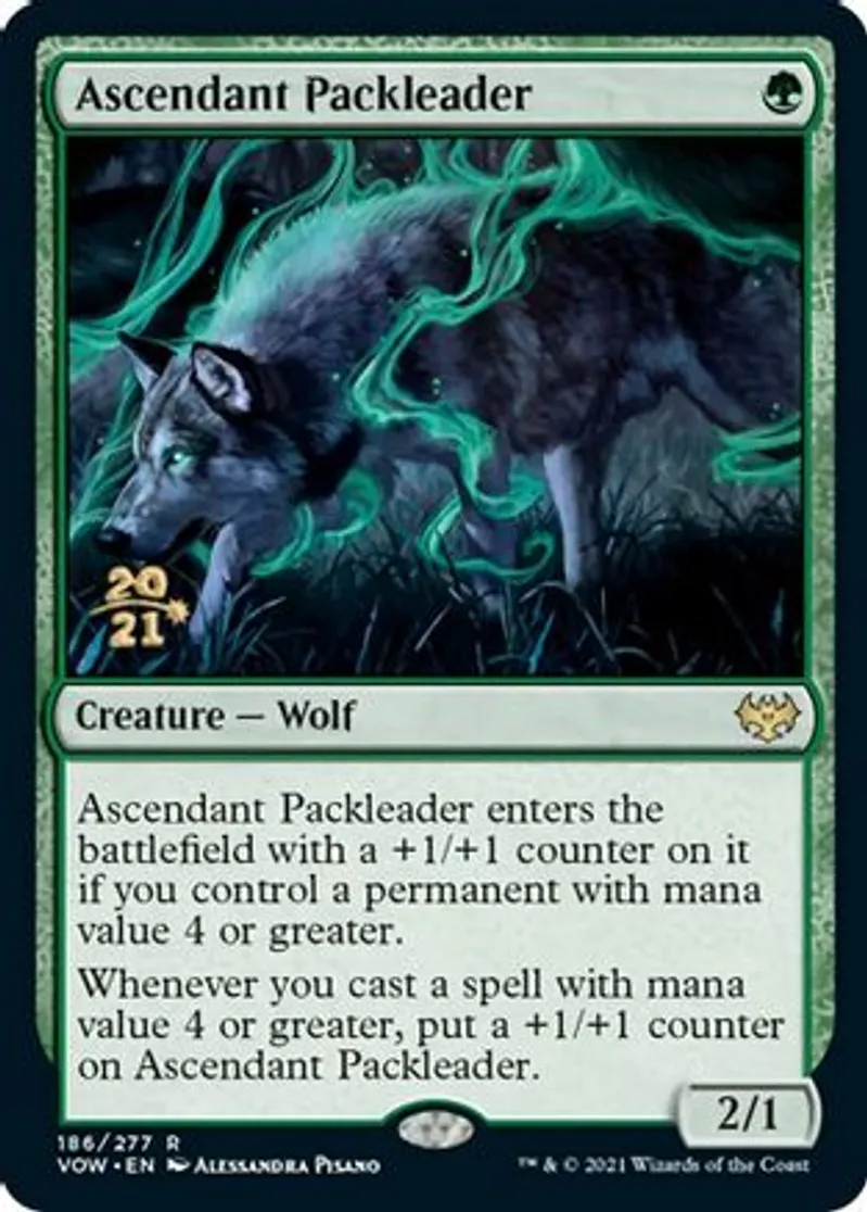 | Oracle Text | Ascendant Packleader enters the battlefield with a +1/+1 counter on it if you control a permanent with mana value 4 or greater.