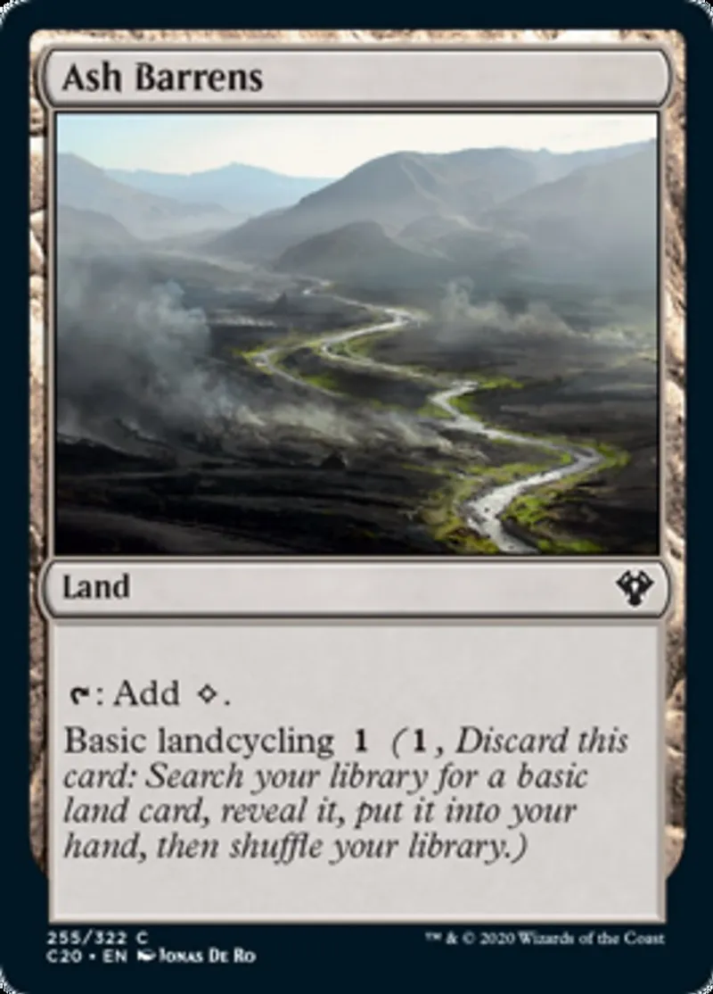 Magic: the Gathering (mtg) common Land Ash Barrens from Commander 2020 (c20) last updated 2026-02-21 16:24:02