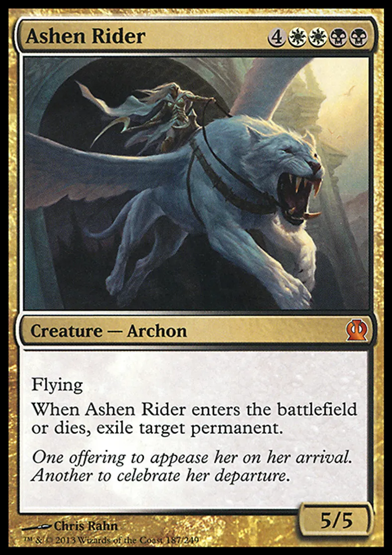 | Oracle Text | Flying When Ashen Rider enters the battlefield or dies, exile target permanent. | ||
