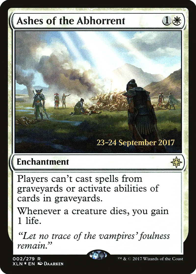 Magic: the Gathering (mtg) Rare Enchantment Ashes of the Abhorrent from Prerelease Cards (pPRE) last updated 2026-02-24 14:39:32