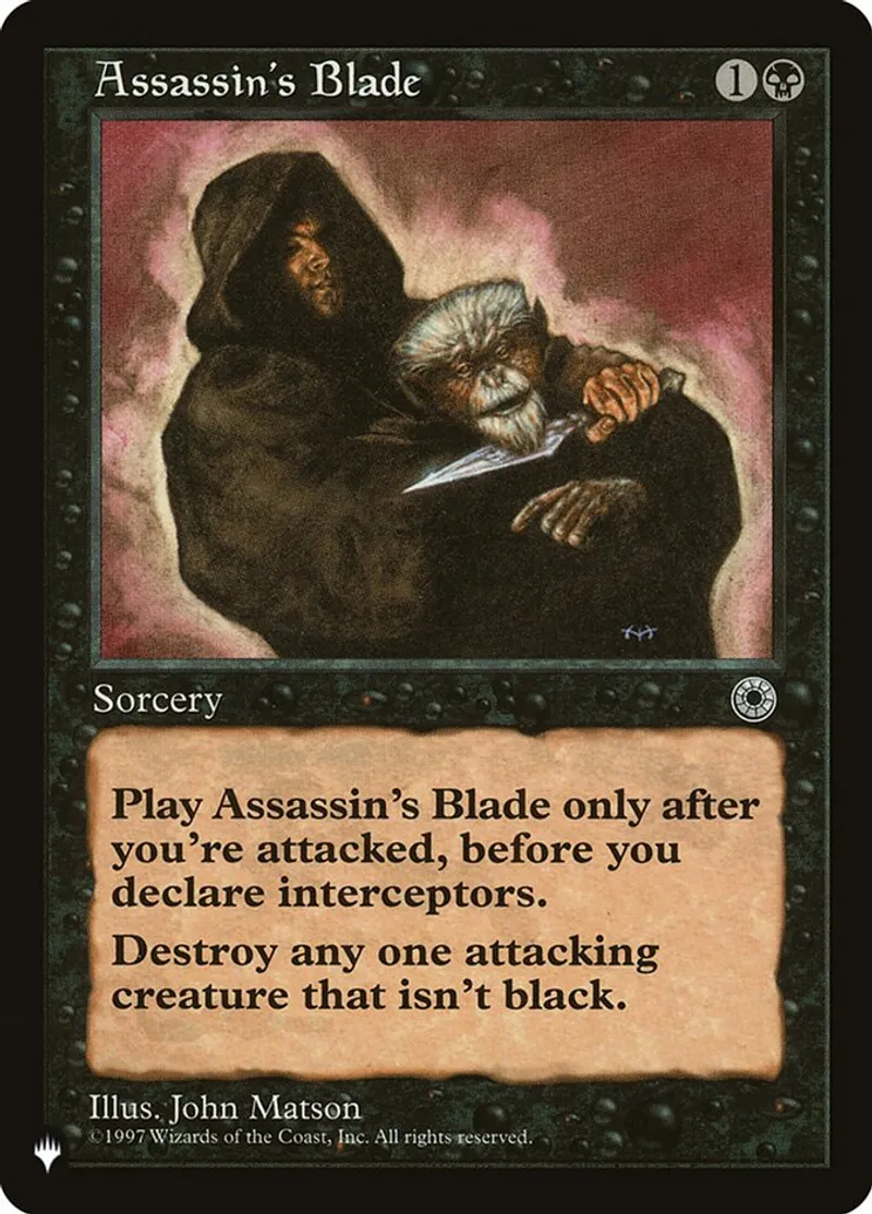 Magic: the Gathering (mtg) Uncommon Sorcery Assassin's Blade from The List (PLIST) last updated 2026-02-21 16:40:02