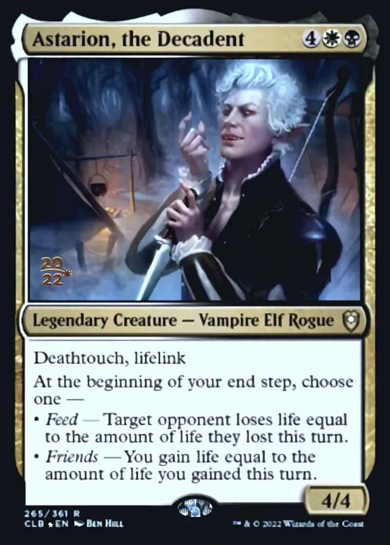 Magic: the Gathering (mtg) Rare Legendary Creature — Vampire Elf Rogue Astarion, the Decadent from Prerelease Cards (pPRE) last updated 2026-02-24 15:37:32