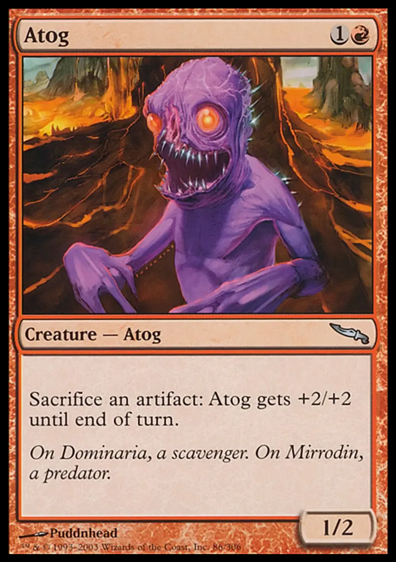 | Oracle Text | Sacrifice an artifact: Atog gets +2/+2 until end of turn. | ||