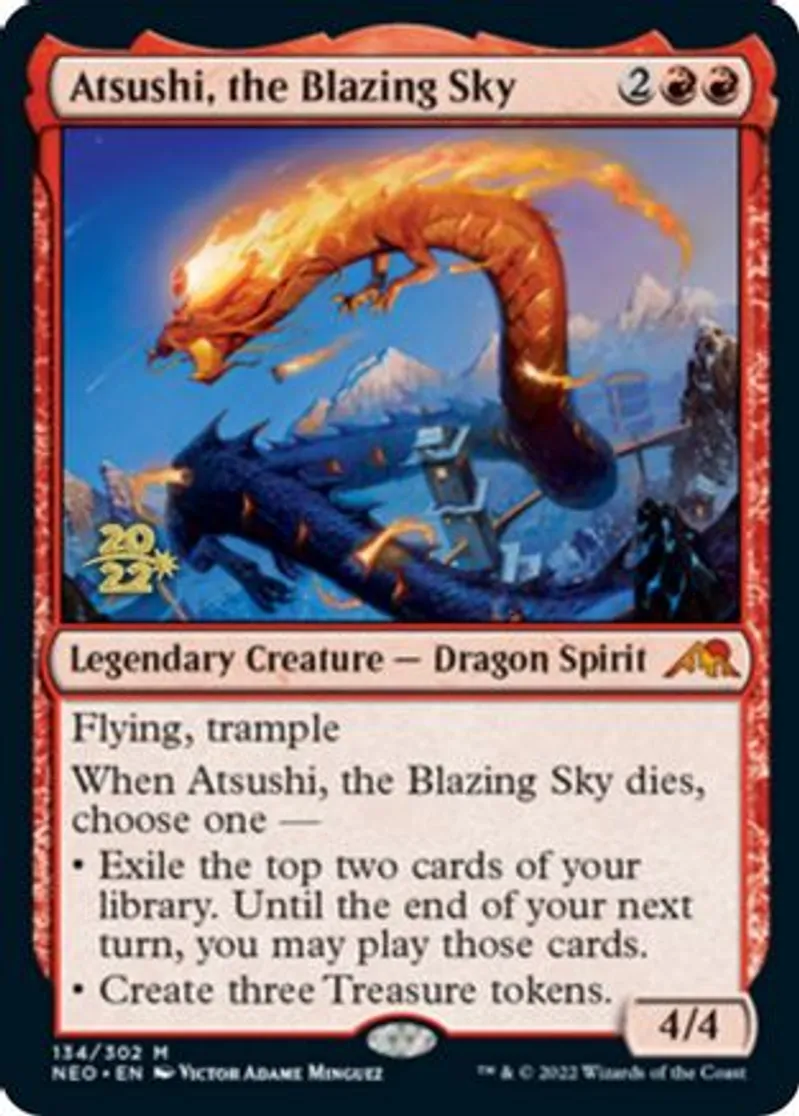 Magic: the Gathering (mtg) Mythic Rare Legendary Creature — Dragon Spirit Atsushi, the Blazing Sky from Prerelease Cards (pPRE) last updated 2026-02-25 14:35:32