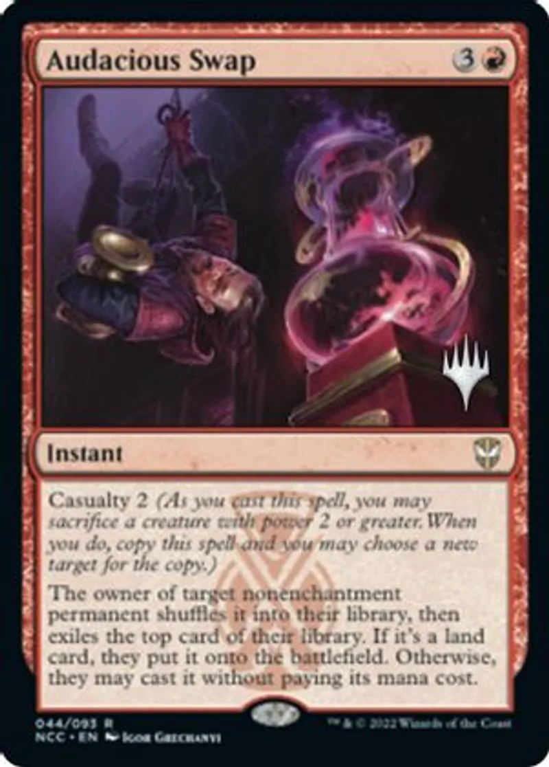 Magic: the Gathering (mtg) Rare Instant Audacious Swap from Promo Pack: Streets of New Capenna (PSNC) last updated 2026-02-21 16:06:36