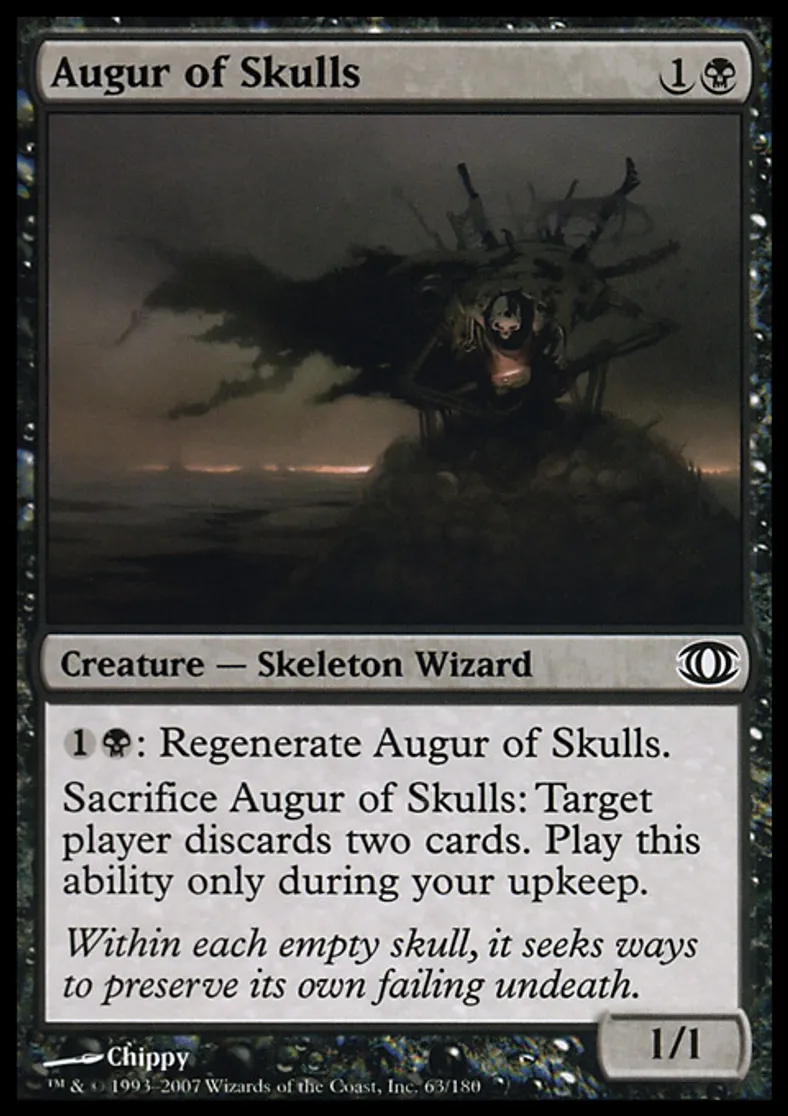 | Oracle Text | {{1}}{{b}}: Regenerate Augur of Skulls. Sacrifice Augur of Skulls: Target player discards two cards. Activate this ability only during your upkeep. | ||