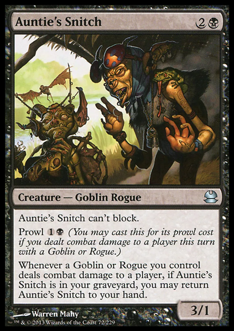 Magic: the Gathering (mtg) Uncommon Creature - Goblin Rogue Auntie's Snitch from Modern Masters (MMA) last updated 2026-02-21 17:14:02