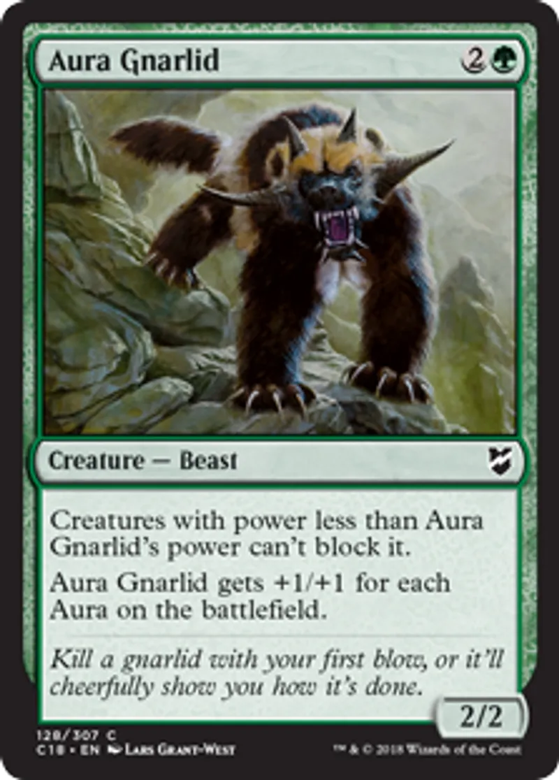 Magic: the Gathering (mtg) Common Creature - Beast Aura Gnarlid from Commander 2018 (C18) last updated 2026-02-21 16:53:32
