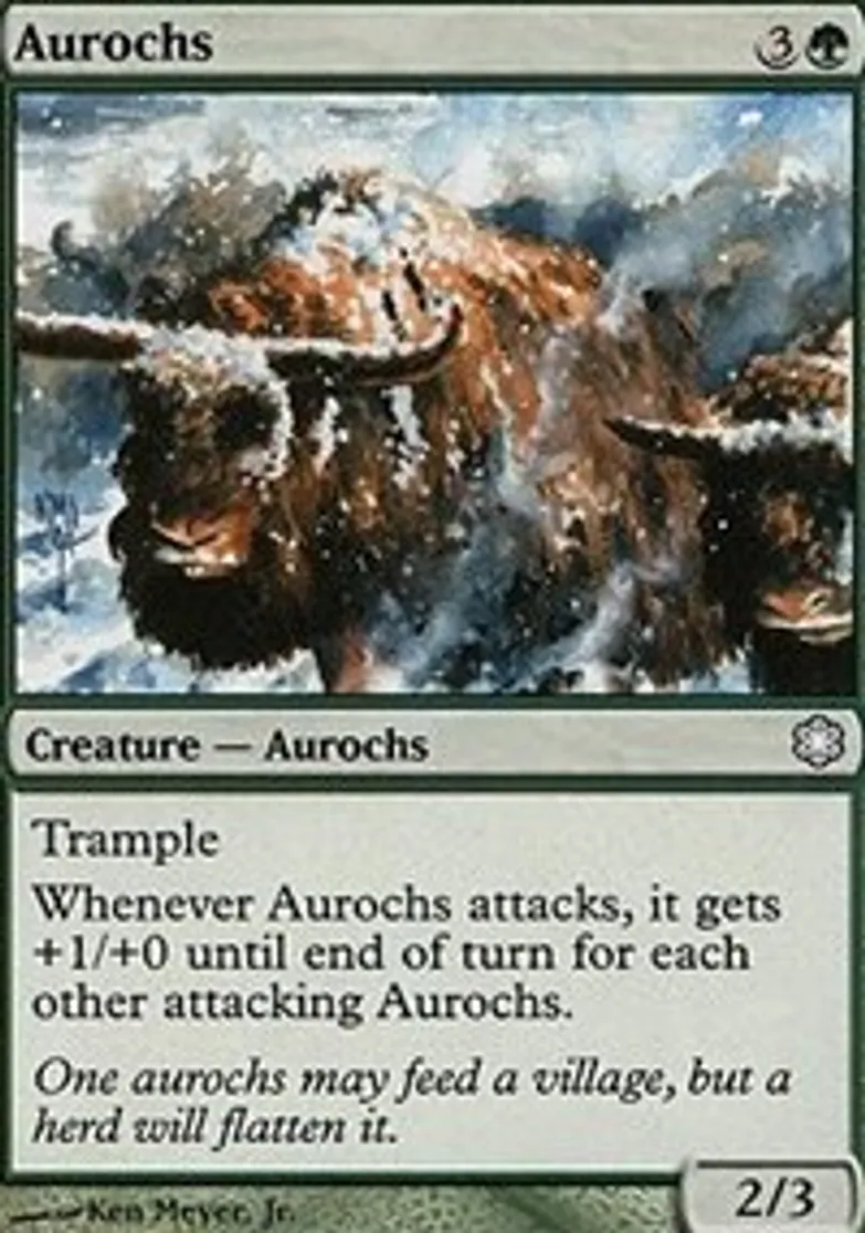 | Oracle Text | Trample Whenever Aurochs attacks, it gets +1/+0 until end of turn for each other attacking Aurochs. | ||