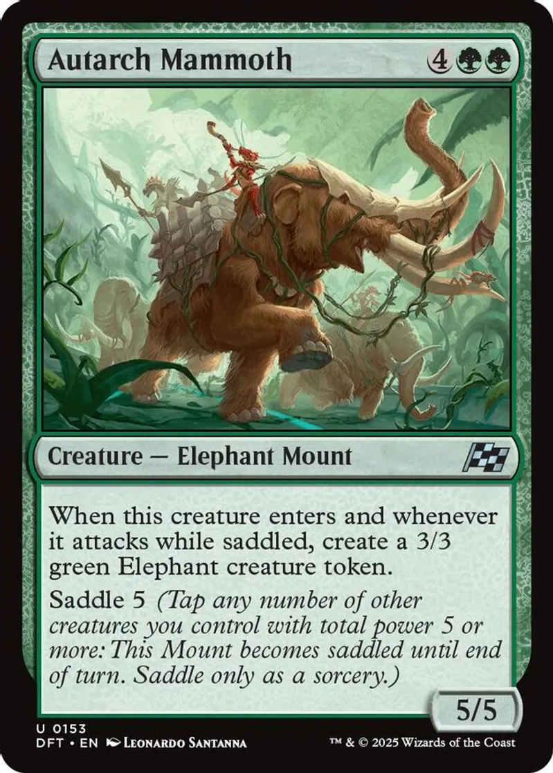 Magic: the Gathering (mtg) Uncommon creature — elephant mount Autarch Mammoth from Aetherdrift (DFT) last updated 2025-12-20 15:34:32