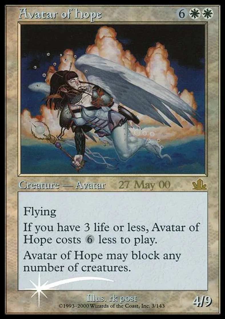 | Oracle Text | If you have 3 or less life, Avatar of Hope costs {6} less to cast.