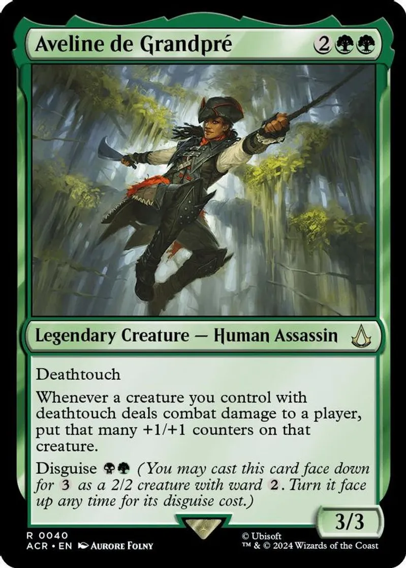 Magic: the Gathering (mtg) Rare legendary creature — human assassin Aveline de Grandpre from Assassin's Creed (ACR) last updated 2025-12-21 15:13:32