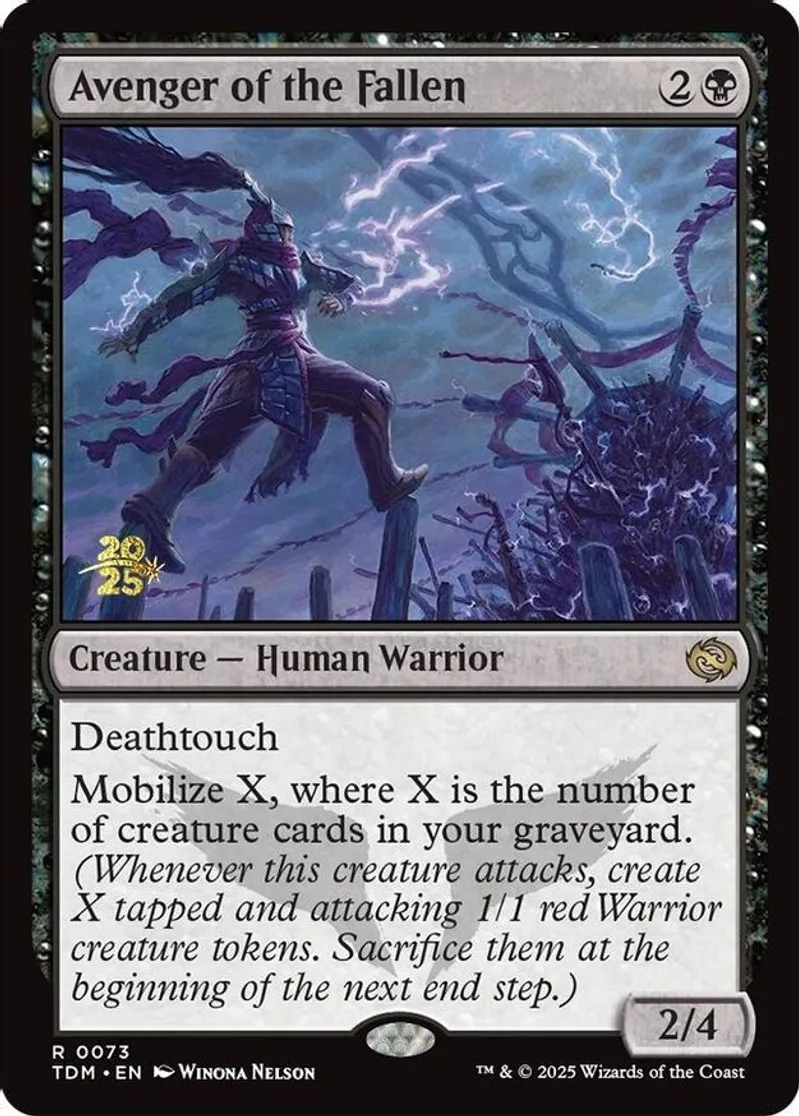 Magic: the Gathering (mtg) Rare Avenger of the Fallen from Prerelease Cards (pPRE) last updated 2025-12-13 15:07:01