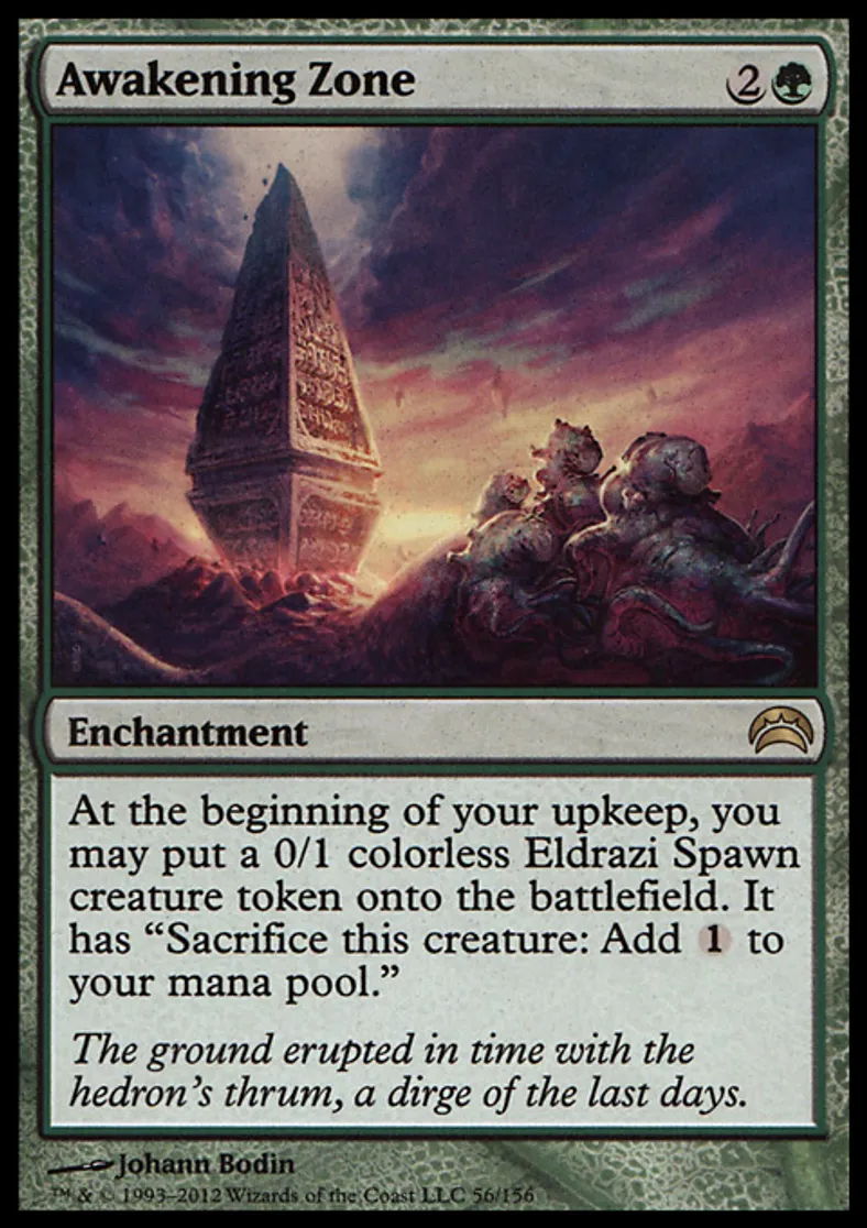 | Oracle Text | At the beginning of your upkeep, you may put a 0/1 colorless Eldrazi Spawn creature token onto the battlefield. It has "Sacrifice this creature: Add {{1}} to your mana pool." | ||
