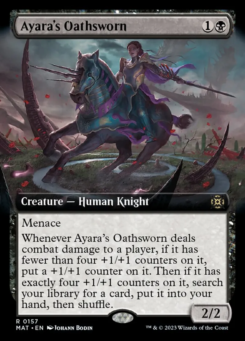Ayara's Oathsworn (Extended Art) is a Rare in the set March of the Machine: The Aftermath.