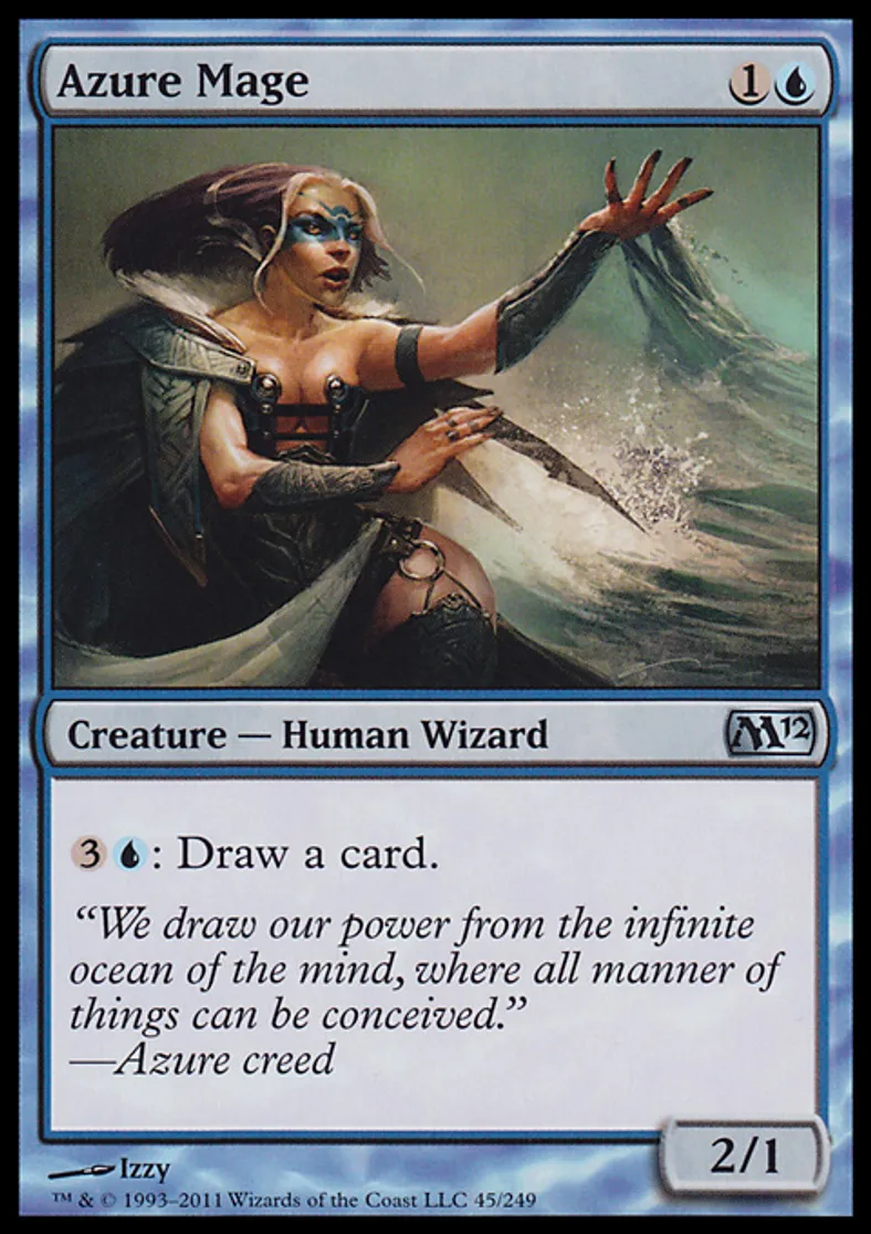Magic: the Gathering (mtg) Uncommon Creature - Human Wizard Azure Mage from Magic 2012 (M12) last updated 2026-02-21 17:07:06