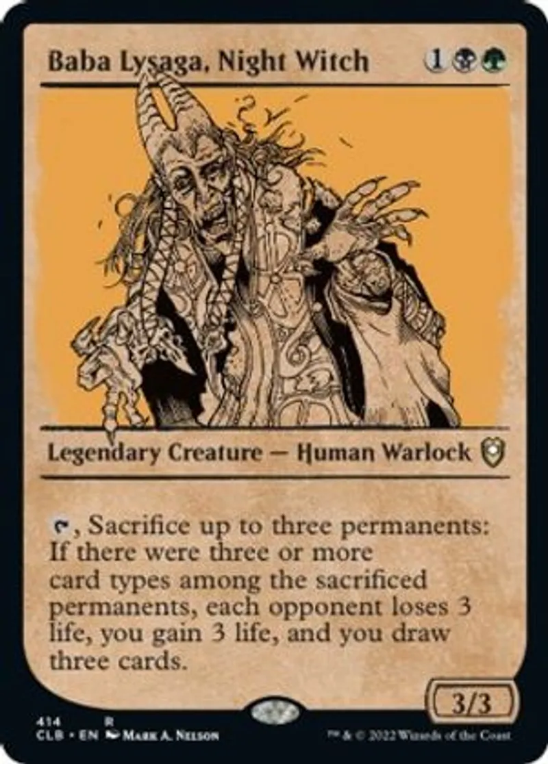 Magic: the Gathering (mtg) Rare Legendary Creature — Human Warlock Baba Lysaga, Night Witch from Commander Legends: Battle for Baldur's Gate (CLB) last updated 2026-02-21 16:08:02