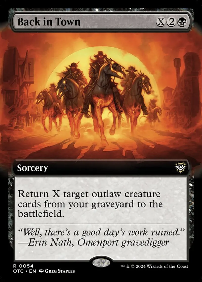 Back in Town (Extended Art) is a rare in the set Outlaws of Thunder Junction Commander.