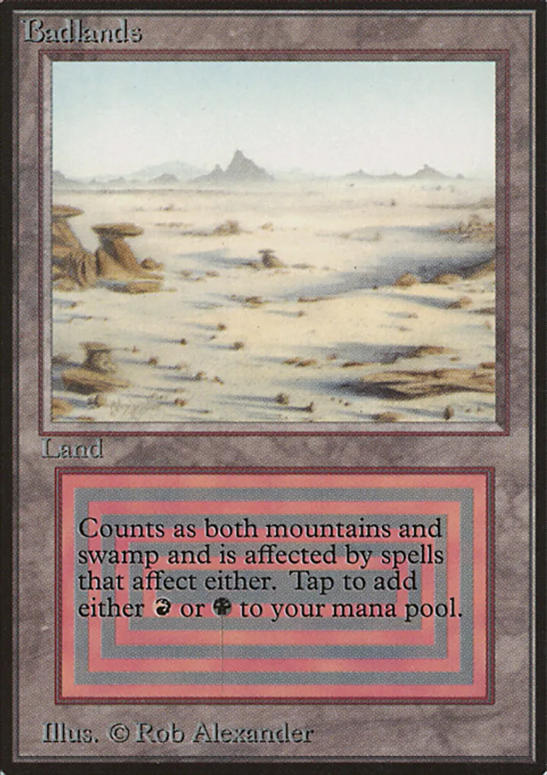 Magic: the Gathering (mtg) Rare Land - Swamp Mountain Badlands from Limited Edition Beta (LEB) last updated 2026-02-07 14:43:02
