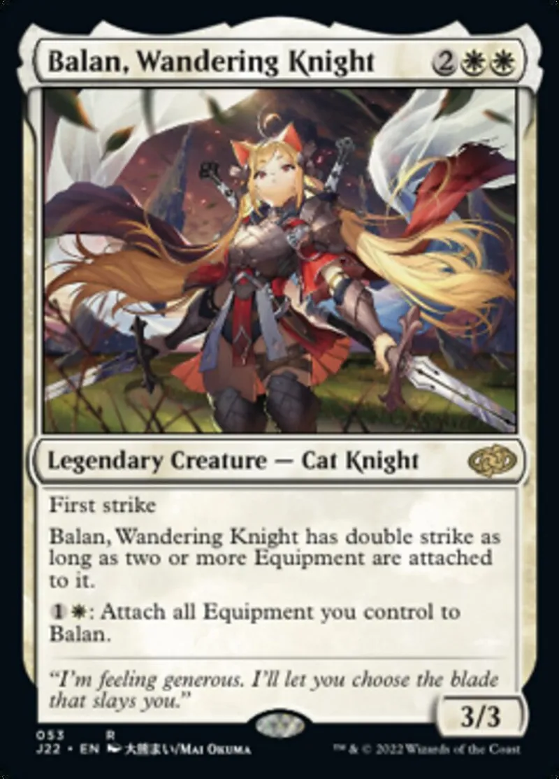 Magic: the Gathering (mtg) rare Legendary Creature — Cat Knight Balan, Wandering Knight from Jumpstart 2022 (j22) last updated 2026-02-24 14:25:32