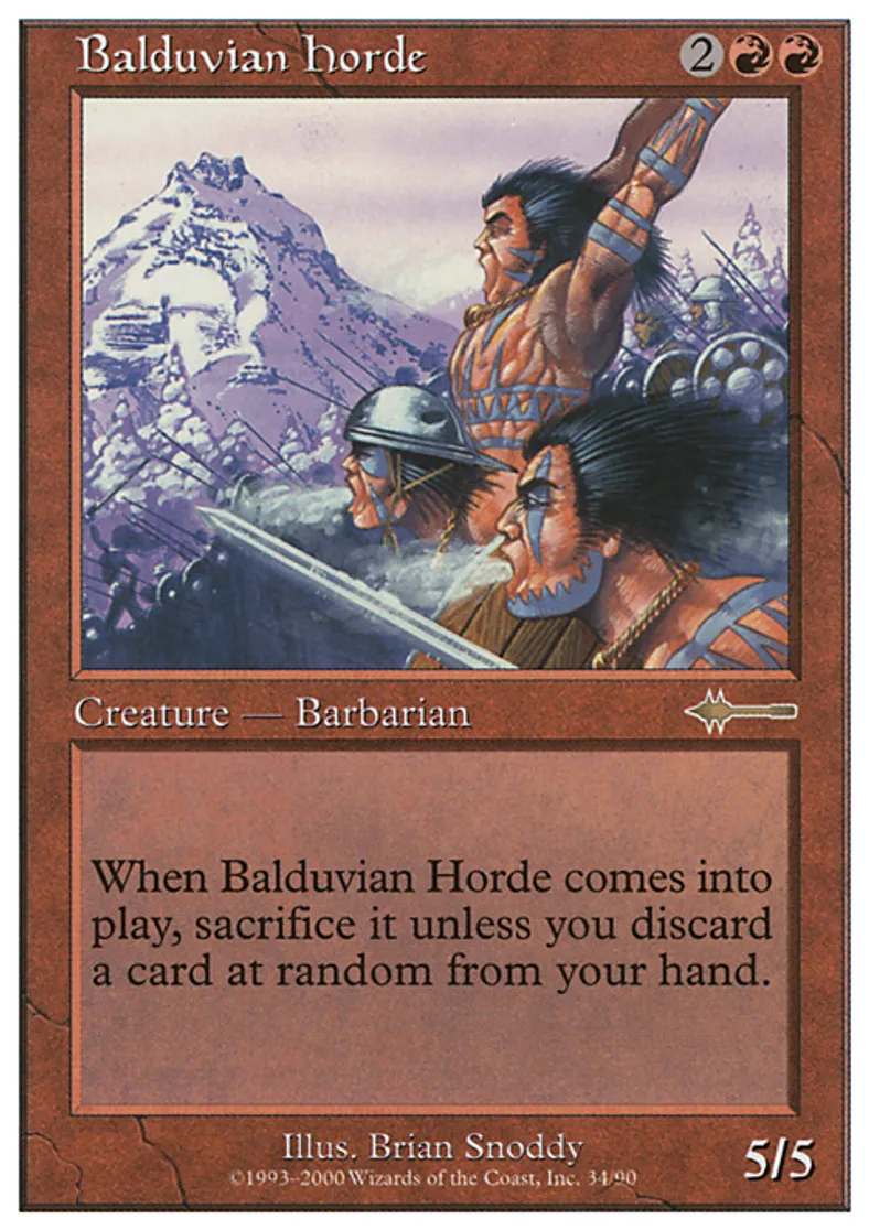 | Oracle Text | When Balduvian Horde enters the battlefield, sacrifice it unless you discard a card at random. | ||