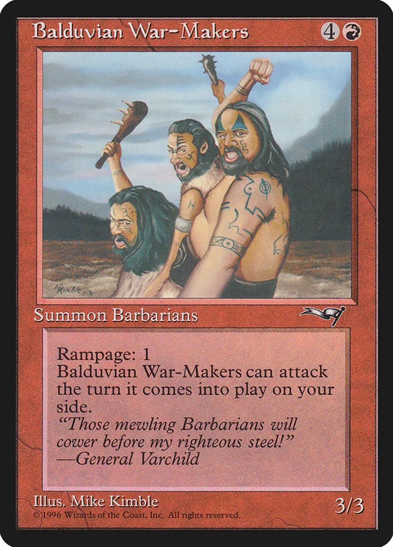 Balduvian War-Makers (Gen. Varchild Flavor) is a Common in the set Alliances.