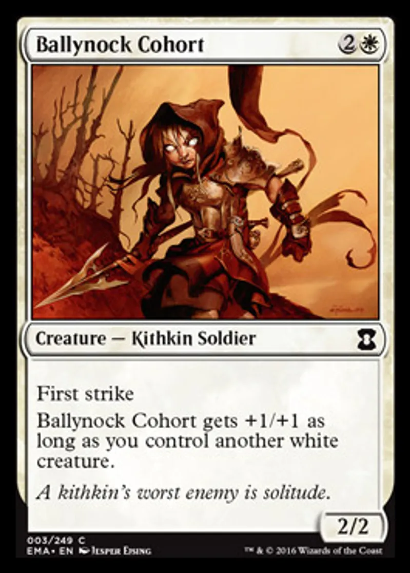 | Oracle Text | First strike Ballynock Cohort gets +1/+1 as long as you control another white creature. | ||