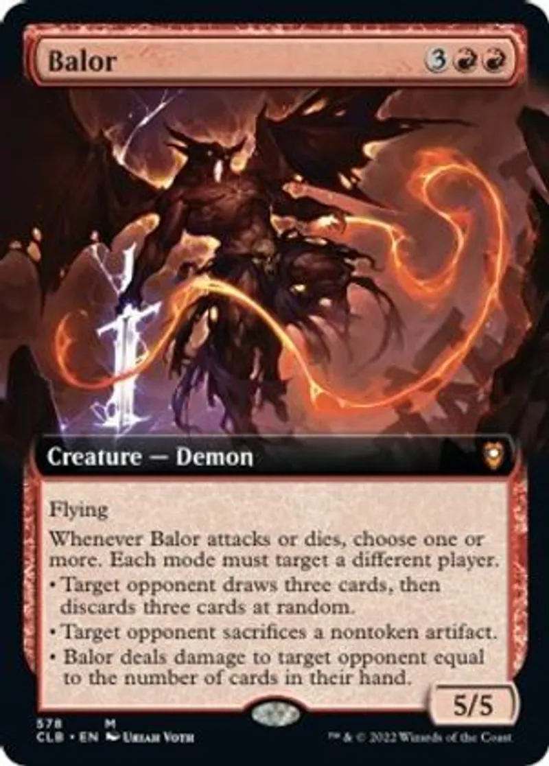 Balor (Extended Art) is a Mythic Rare in the set Commander Legends: Battle for Baldur's Gate.