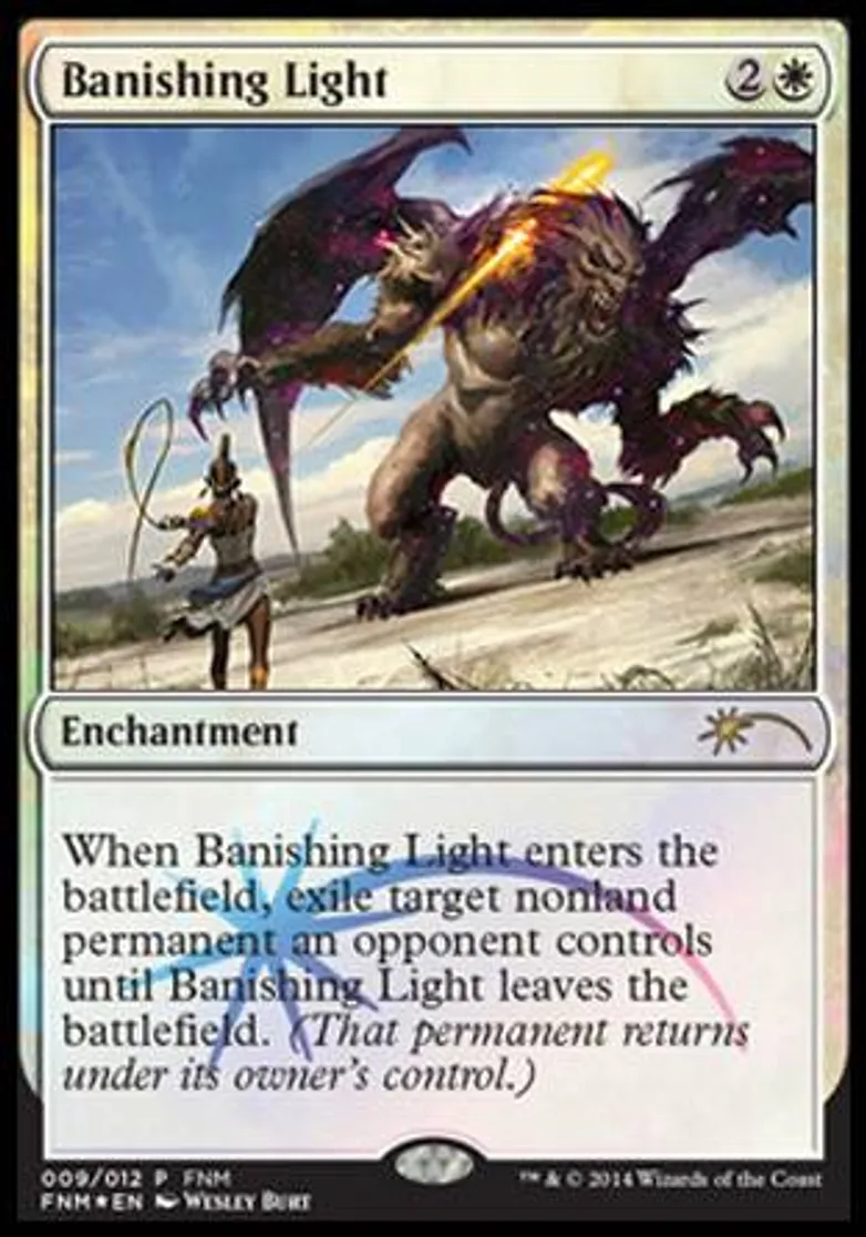 Magic: the Gathering (mtg) Special Enchantment Banishing Light from FNM Promos (pFNM) last updated 2026-02-21 17:19:01