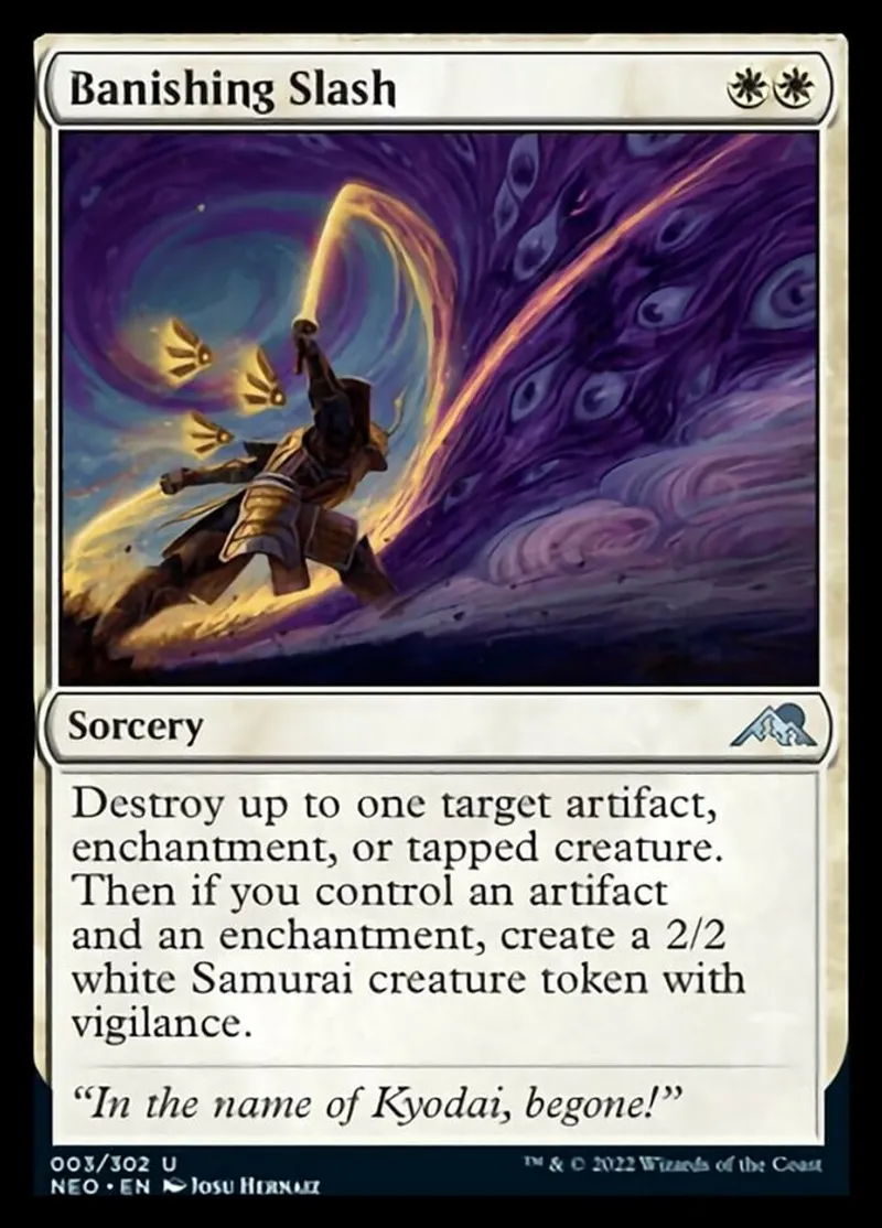 Magic: the Gathering (mtg) uncommon Sorcery Banishing Slash from Kamigawa: Neon Dynasty (neo) last updated 2026-02-21 16:02:32