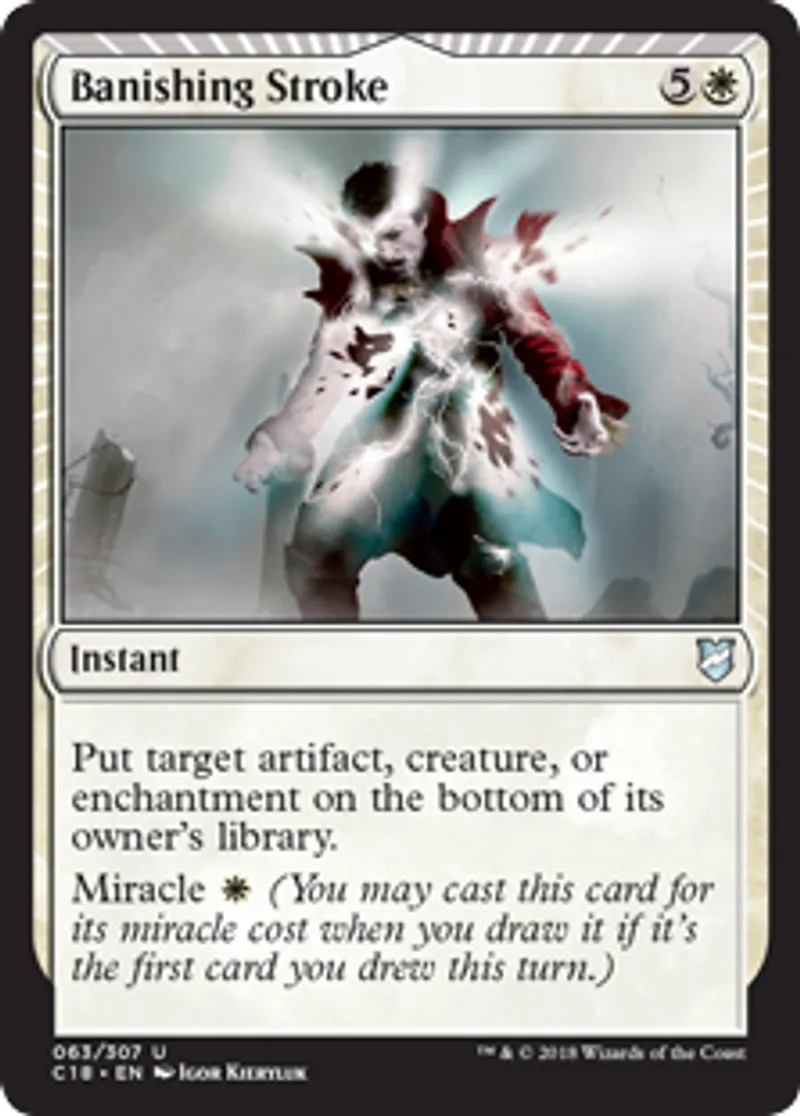 Magic: the Gathering (mtg) Uncommon Instant Banishing Stroke from Commander 2018 (C18) last updated 2026-02-21 16:53:32