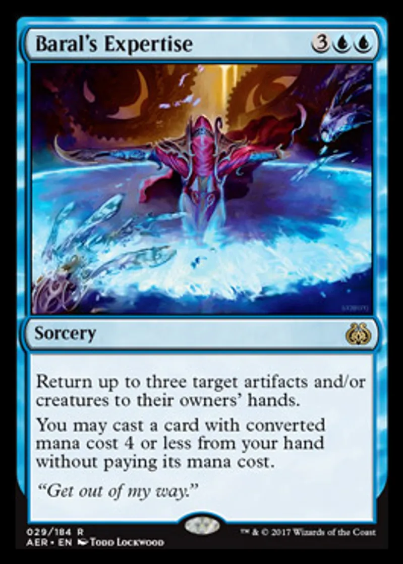 Magic: the Gathering (mtg) Rare Sorcery Baral's Expertise from Aether Revolt (AER) last updated 2026-02-21 17:27:36