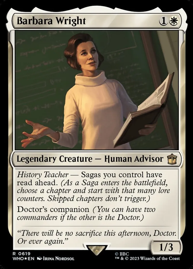 Magic: the Gathering (mtg) Rare Legendary Creature — Human Advisor Barbara Wright from Doctor Who (who) last updated 2026-02-25 15:46:02