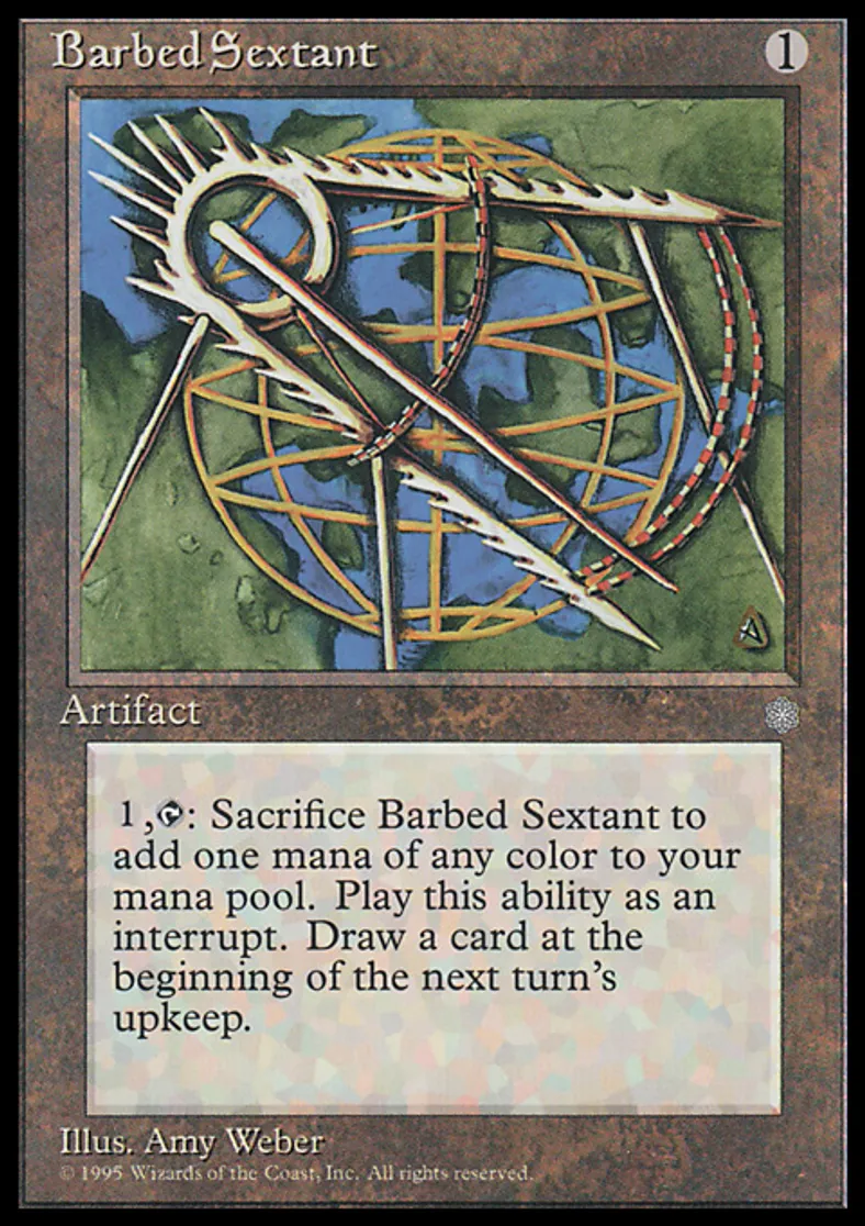 | Oracle Text | {{1}}, {{t}}, Sacrifice Barbed Sextant: Add one mana of any color to your mana pool. Draw a card at the beginning of the next turn's upkeep. | ||