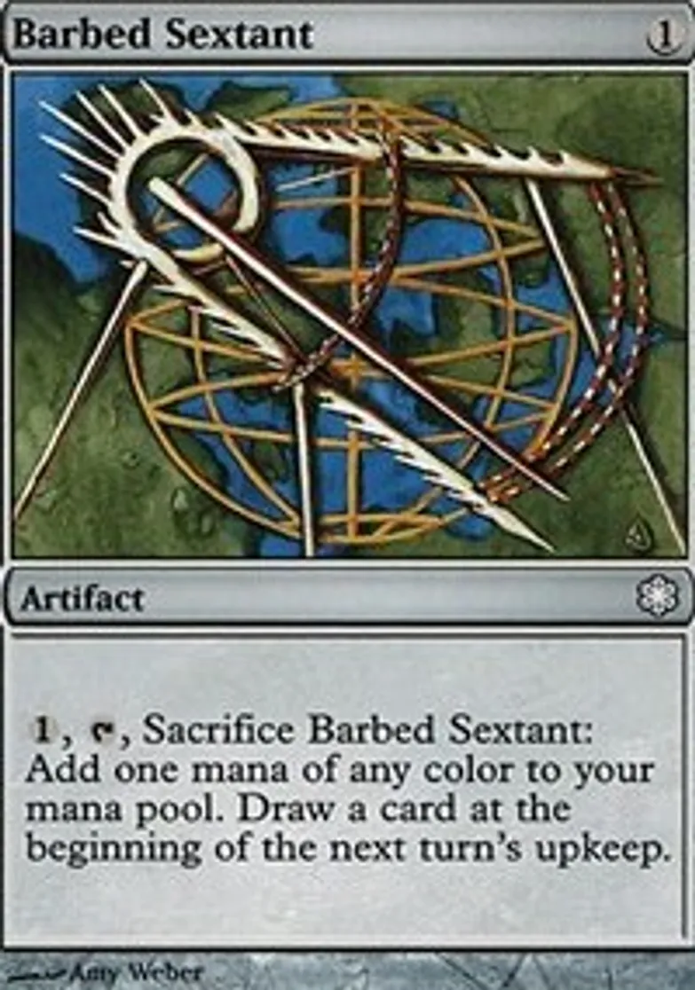 | Oracle Text | {{1}}, {{t}}, Sacrifice Barbed Sextant: Add one mana of any color to your mana pool. Draw a card at the beginning of the next turn's upkeep. | ||
