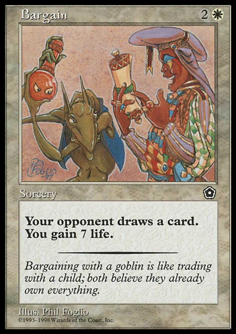 Magic: the Gathering (mtg) Uncommon Sorcery Bargain from Portal Second Age (P02) last updated 2026-02-24 15:07:03