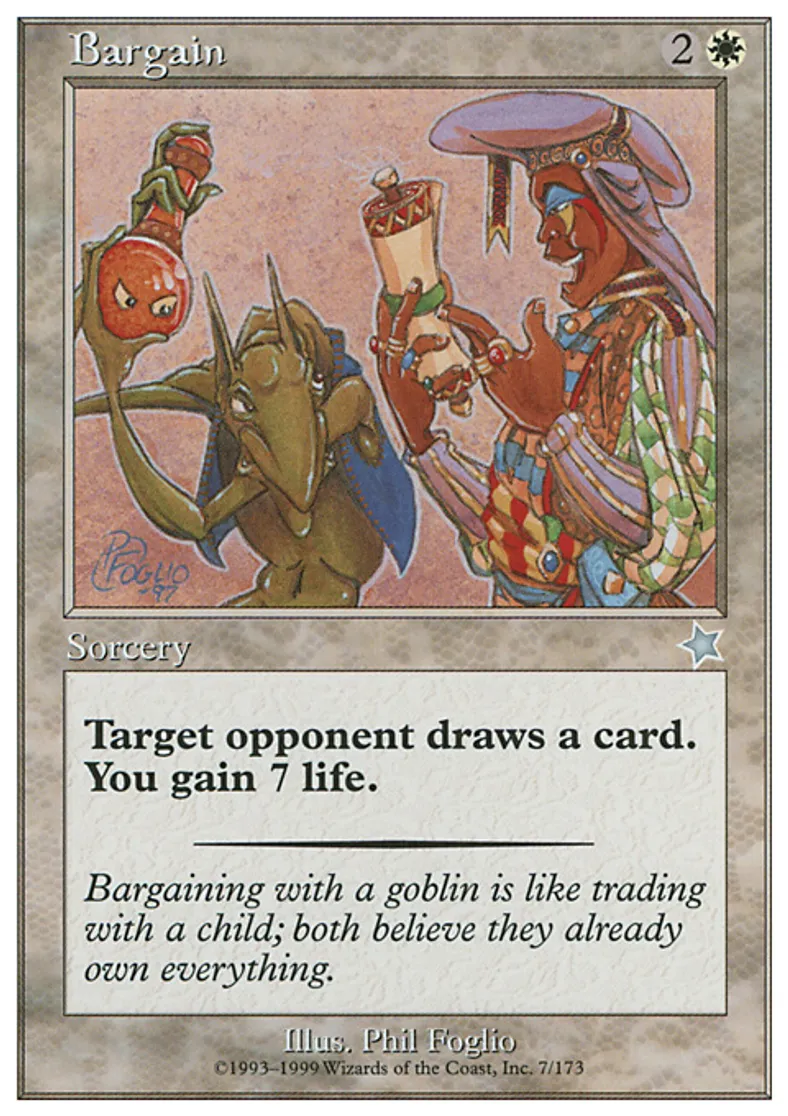 Magic: the Gathering (mtg) Uncommon Sorcery Bargain from Starter 1999 (S99) last updated 2026-02-21 15:06:07