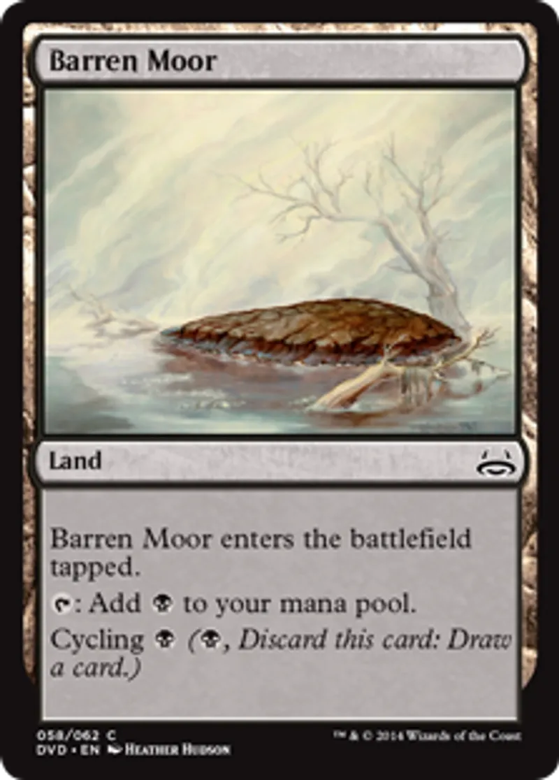 | Oracle Text | Barren Moor enters the battlefield tapped. {{t}}: Add {{b}} to your mana pool. Cycling {{b}} ({{b}}, Discard this card: Draw a card.) | ||