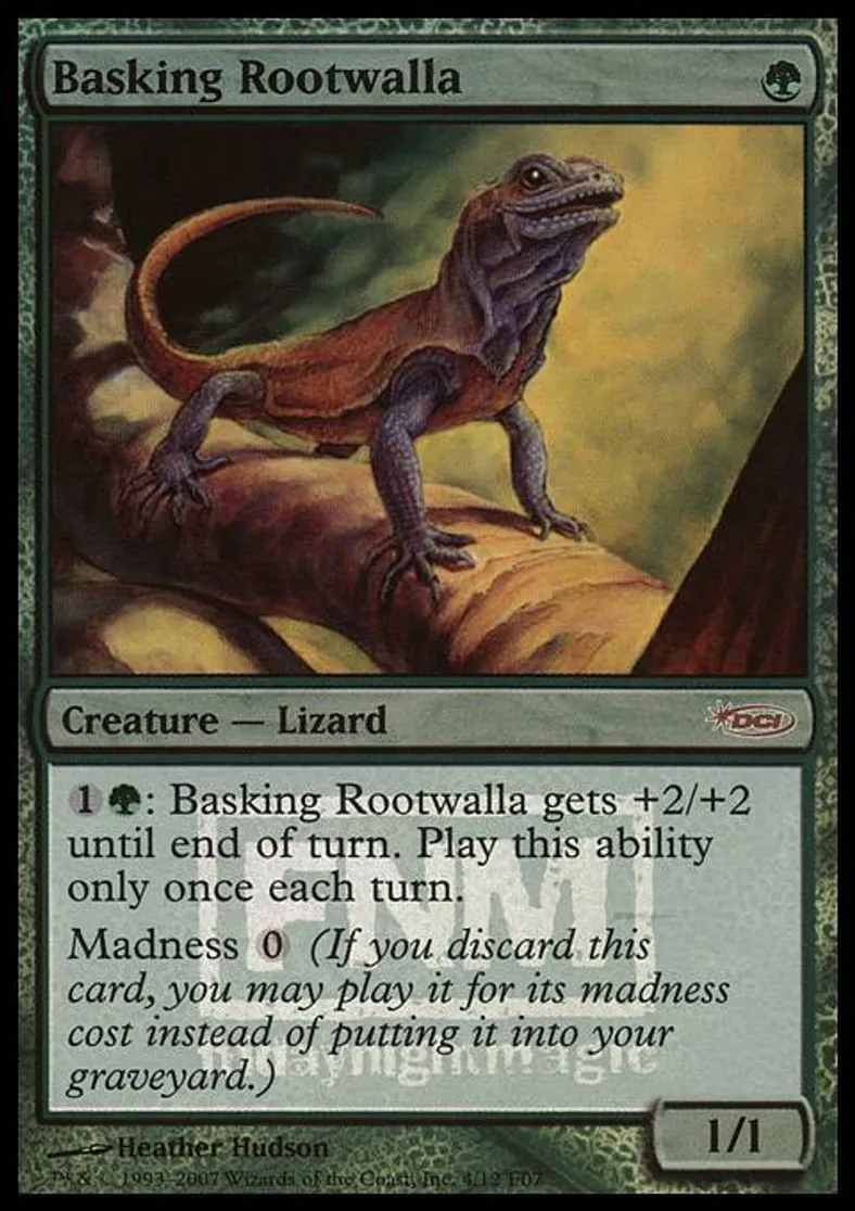 Magic: the Gathering (mtg) Special Creature - Lizard Basking Rootwalla from FNM Promos (pFNM) last updated 2026-02-25 16:01:02
