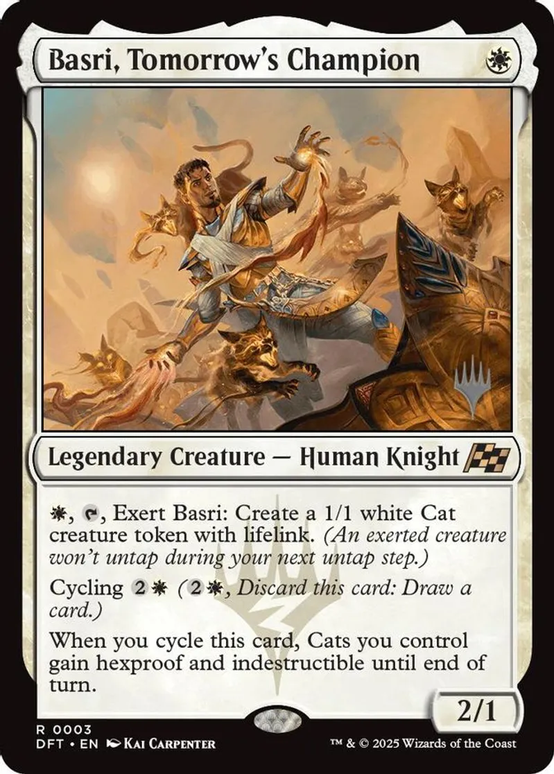 Magic: the Gathering (mtg) Rare legendary creature — human knight Basri, Tomorrow's Champion from Promo Pack: Aetherdrift (PPDFT) last updated 2025-12-15 15:17:02
