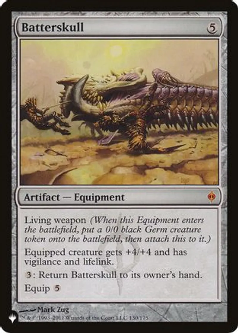Magic: the Gathering (mtg) Mythic Rare Artifact — Equipment Batterskull from The List (PLIST) last updated 2026-02-25 14:54:02