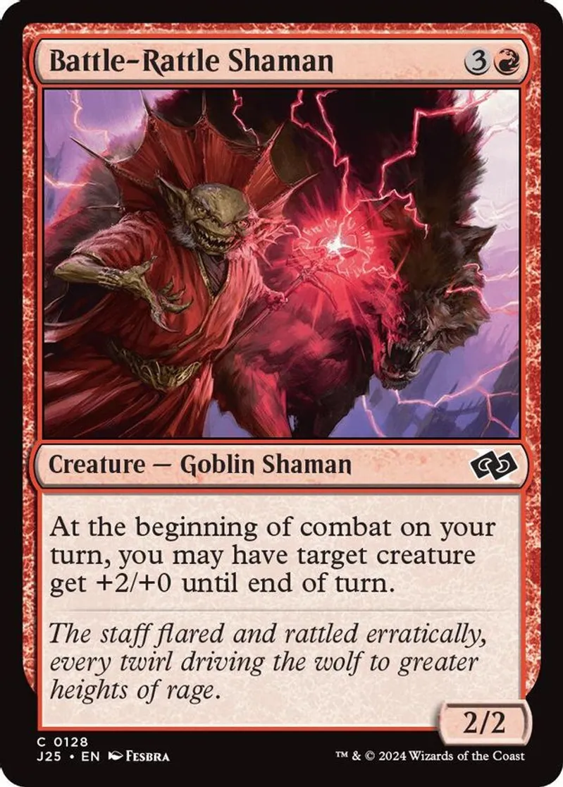 Magic: the Gathering (mtg) Common creature — goblin shaman Battle-Rattle Shaman from Foundations Jumpstart (J25) last updated 2025-12-06 15:34:02