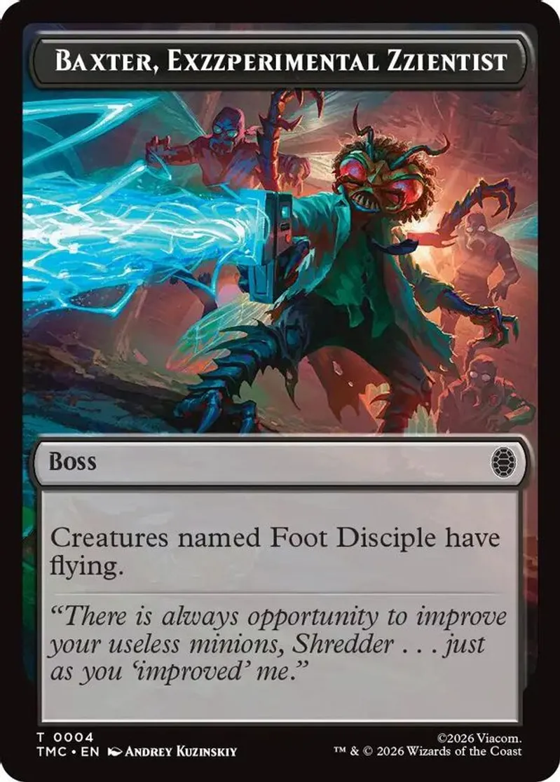 Magic: the Gathering (mtg) Token boss Baxter, Exzzperimental Zzientist from Commander: Teenage Mutant Ninja Turtles (TMC) last updated 2026-03-07 08:57:04