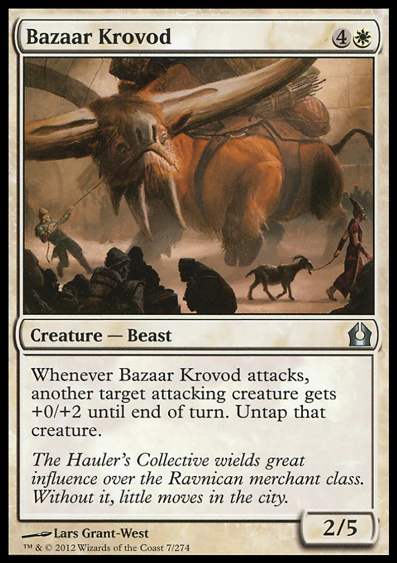 | Oracle Text | Whenever Bazaar Krovod attacks, another target attacking creature gets +0/+2 until end of turn. Untap that creature. | ||