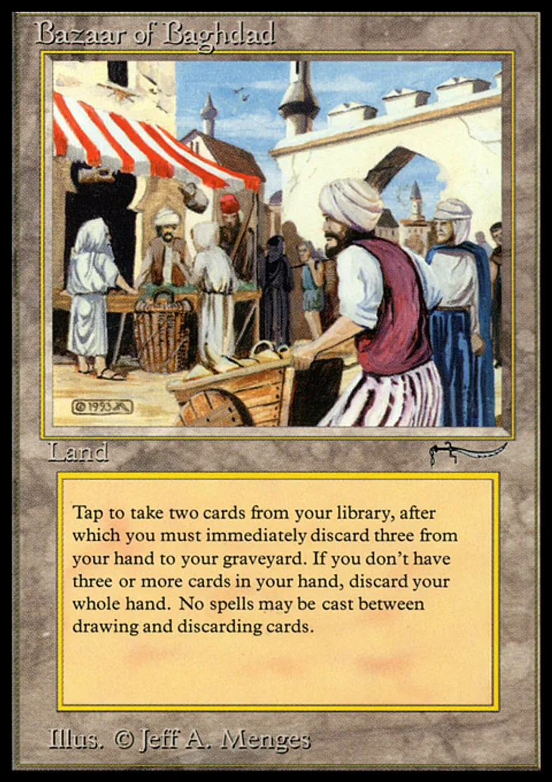 Magic: the Gathering (mtg) Uncommon Land Bazaar of Baghdad from Arabian Nights (ARN) last updated 2026-02-07 14:43:32