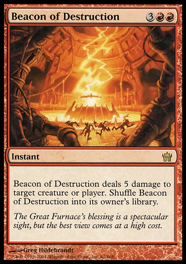 | Oracle Text | Beacon of Destruction deals 5 damage to target creature or player. Shuffle Beacon of Destruction into its owner's library. | ||